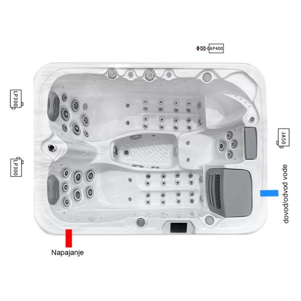 Bazen pripada premium liniji Alpha koja će vas sigurno impresionirati. Preko napredne upravljačke ploče osjetljive na dodir ili Wi-Fi veze bazenom ćete upravljati jednostavno i brzo. Uživajte u učinkovitoj masaži i intimnoj atmosferi sami ili u društvu svojih najdražih.