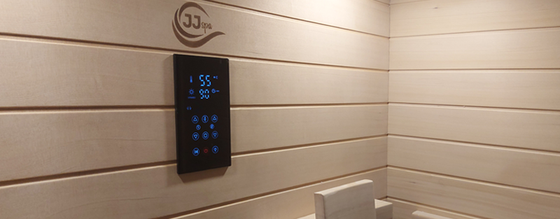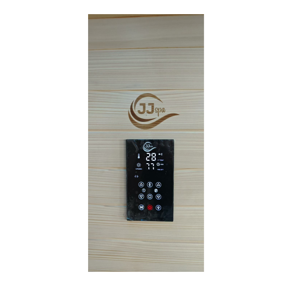 Sauna JJSPA JF210 ima ugrađenu JJSPA kontrolnu ploču sa zaslonom osjetljivim na dodir koje vam omogućuju upravljanje svim funkcijama vaše saune: uključivanje i isključivanje saune i grijača, podešavanje temperature, podešavanje timera, puštanje vaše omiljene glazbe ili slušanje radija putem Bluetootha i mijenjanje RGB rasvjete.
