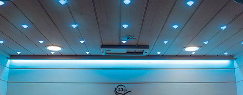 Kromoterapiju u sauni JF210 pruža LED RGB zvjezdano nebo. Boje svjetla mogu se mijenjati putem upravljačke ploče ili aplikacije a time uz sve dobrobiti za zdravlje uravnotežujemo i svoje unutarnje osjećaje.