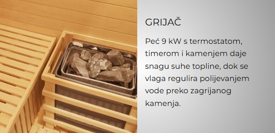 | Peć | 9 kW s vulkanskim kamenjem |